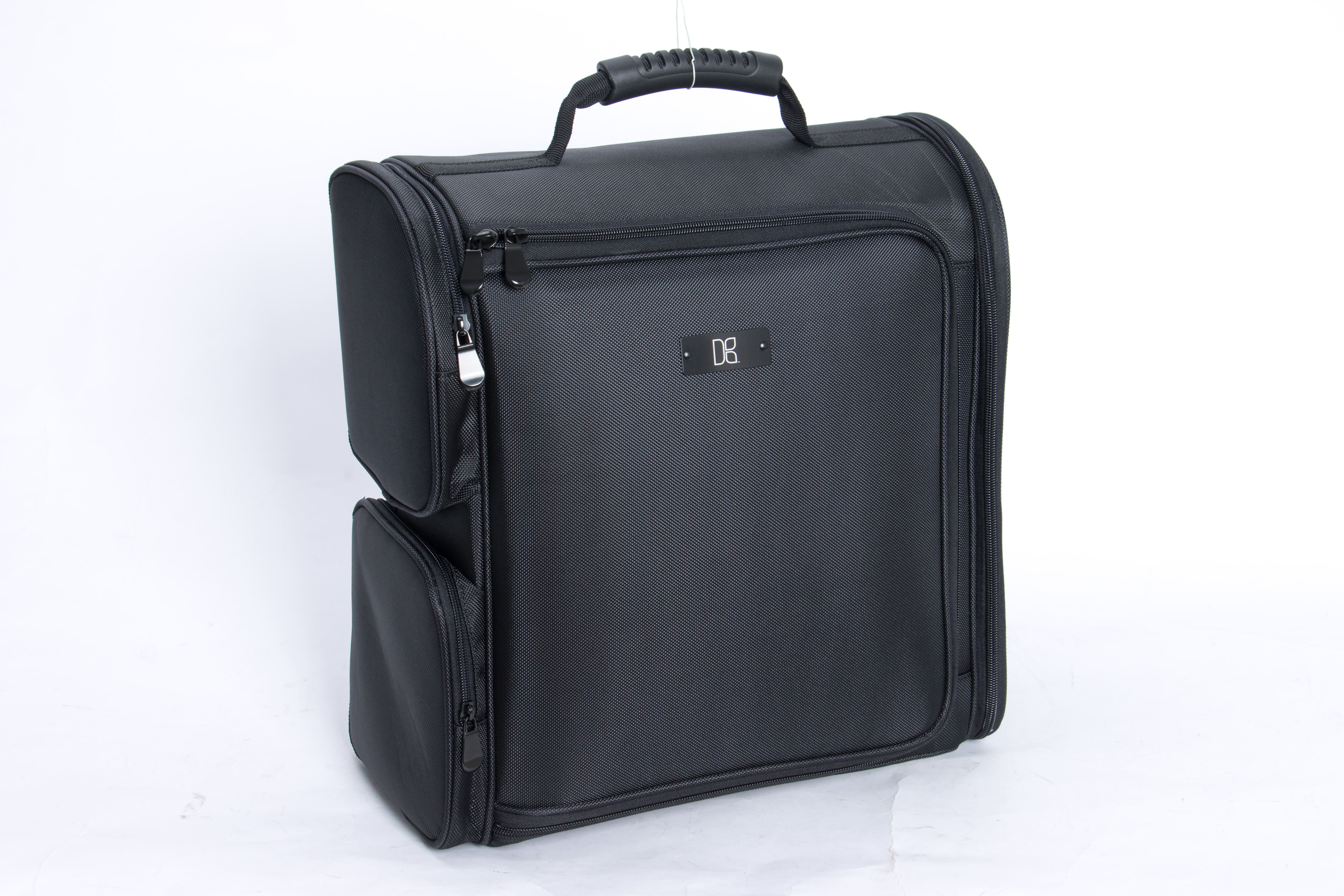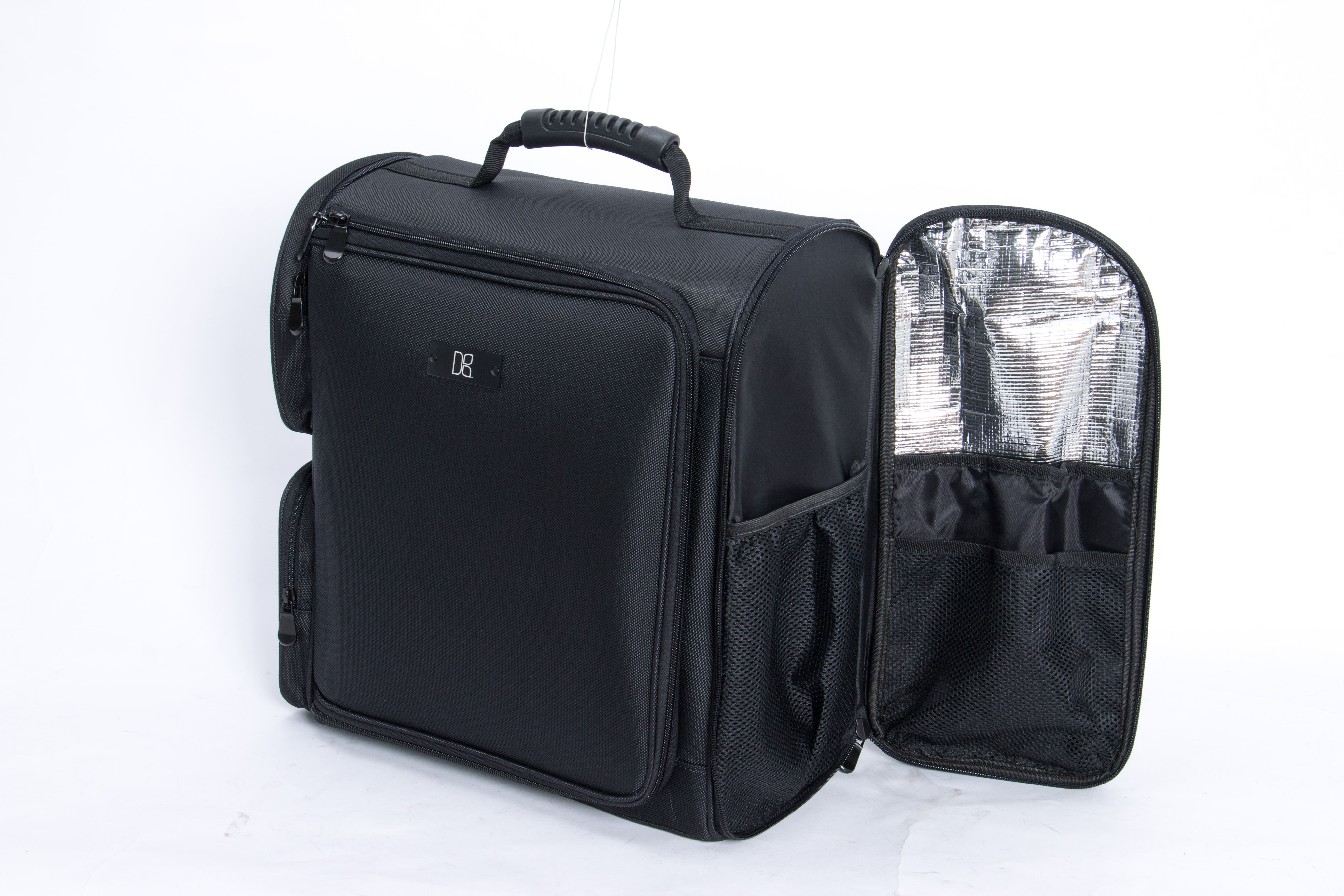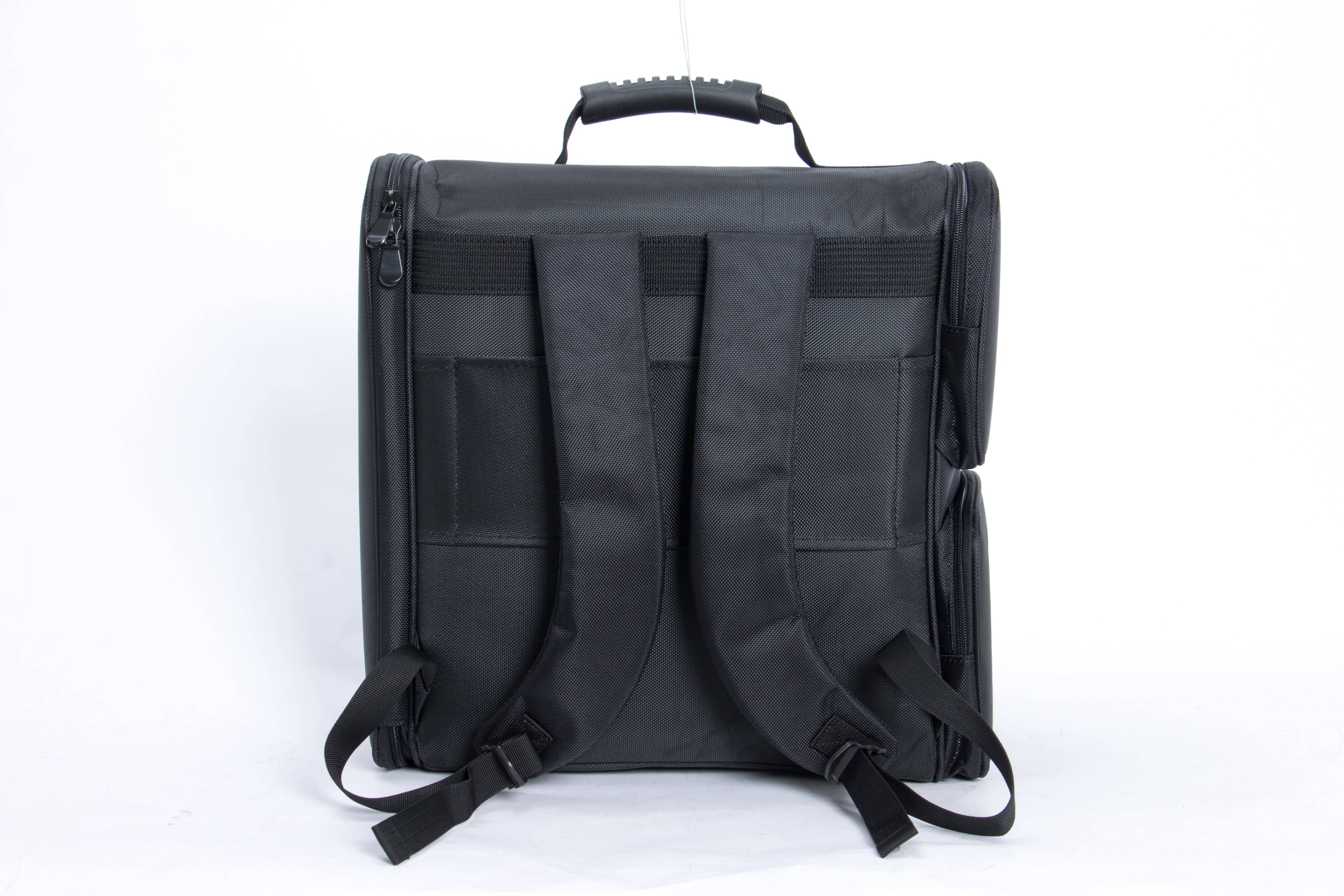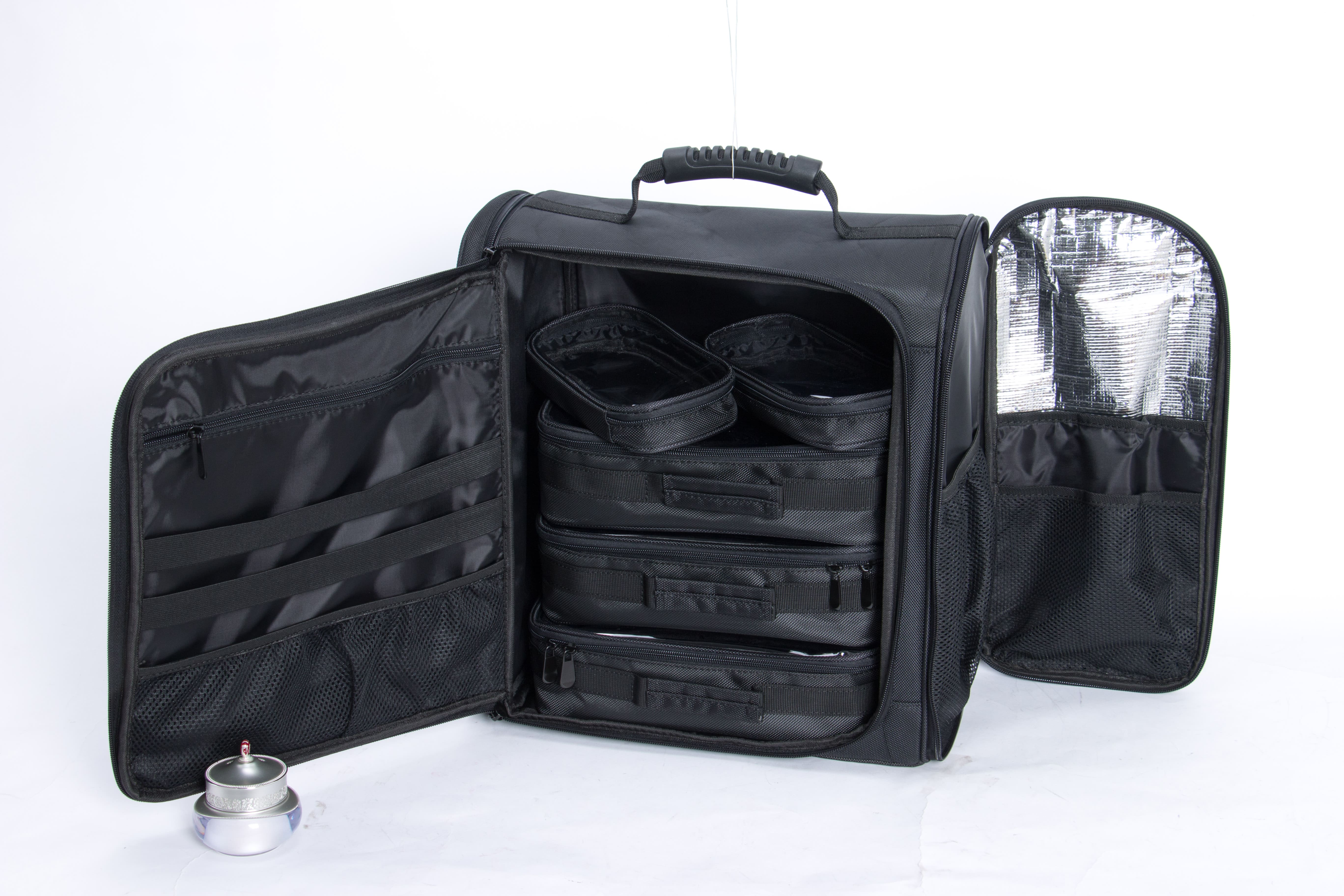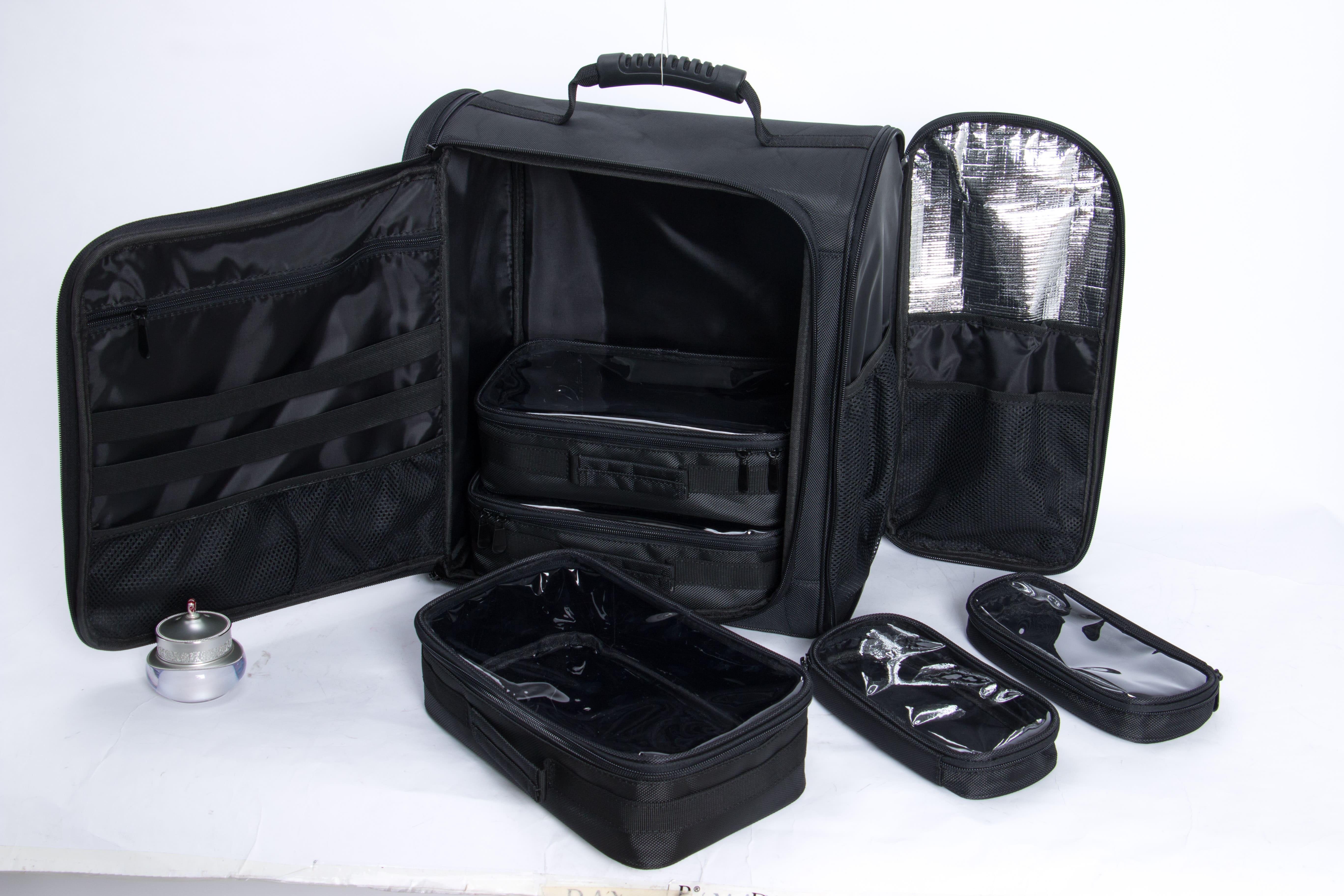 This over sized hair traveling bag, being on set and on the go, having a good hair bag for all your essential needs is a must. With the strong handle on top, the left side with one zipper pocket & the right side has two zipper pockets. The front pockets opens with a light weight multifunctional backpack with an extra five pouches on the side.